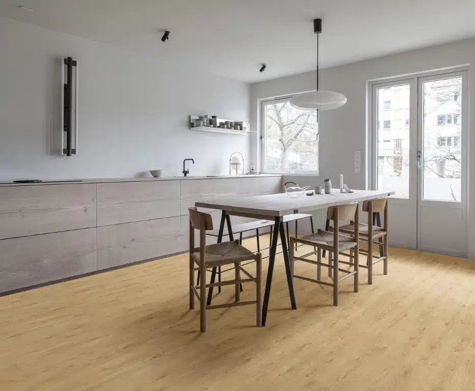 The flooring is highly resistant to scratches and everyday wear, making it ideal for busy households or commercial spaces​.